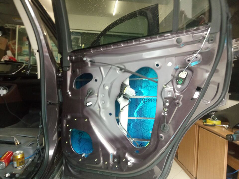 相對于日系大多數(shù)車型來說昂科威的原車隔音還是很不錯的,但對于滿足音響環(huán)境輸出卻還是不夠的,所以此時做個四門隔音也是很有必要的