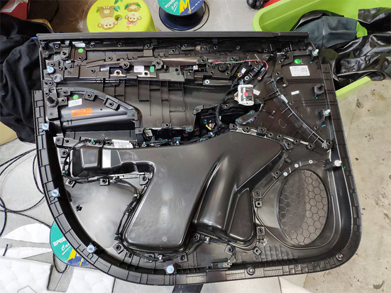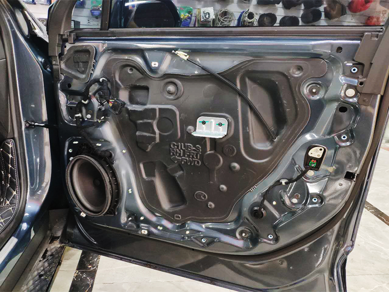 原車拆卸下來的門板,連一張吸音棉也是沒有的,非常的摳門容易產生異響
