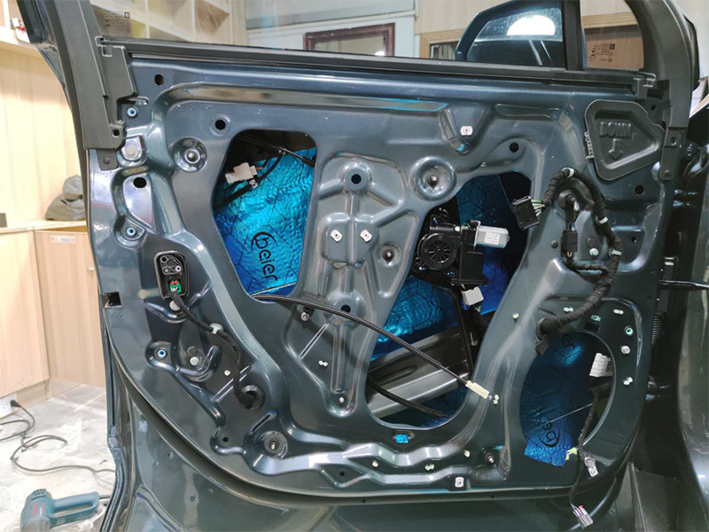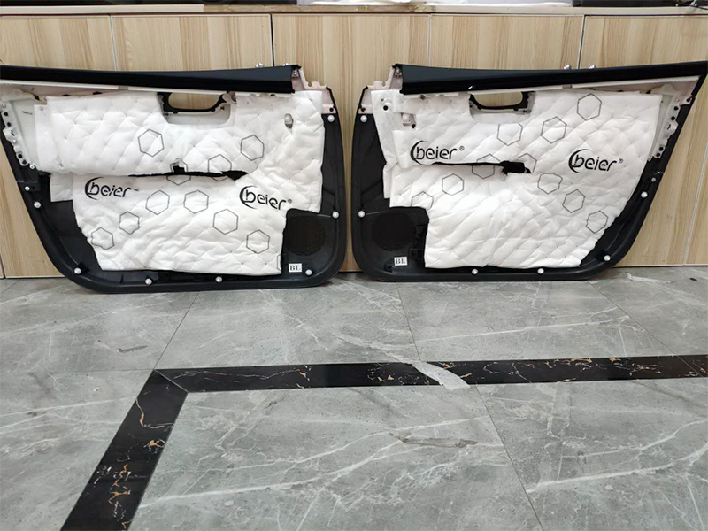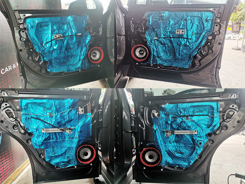 原車拆卸門板后,只是一層簡單的防水膜,根本起不了隔音的效果,所以難以令人接受