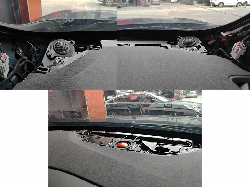 高音原裝位置無損升級,專車專用。車主對環(huán)繞效果非常的注重,所以增加了JBL中置.