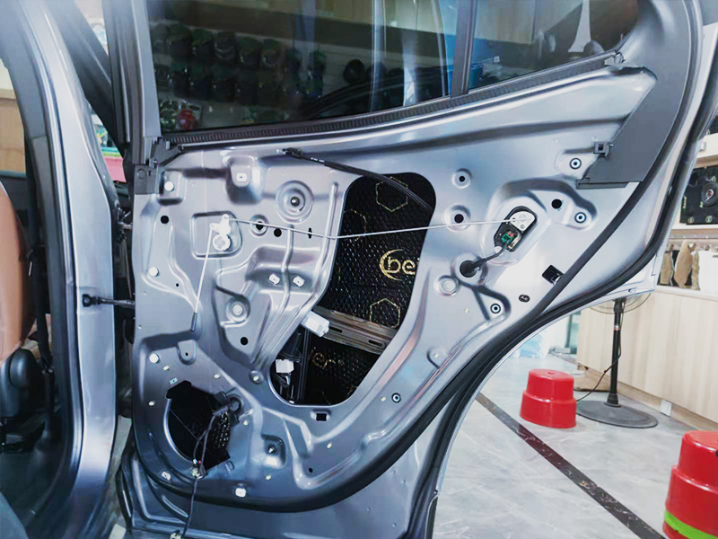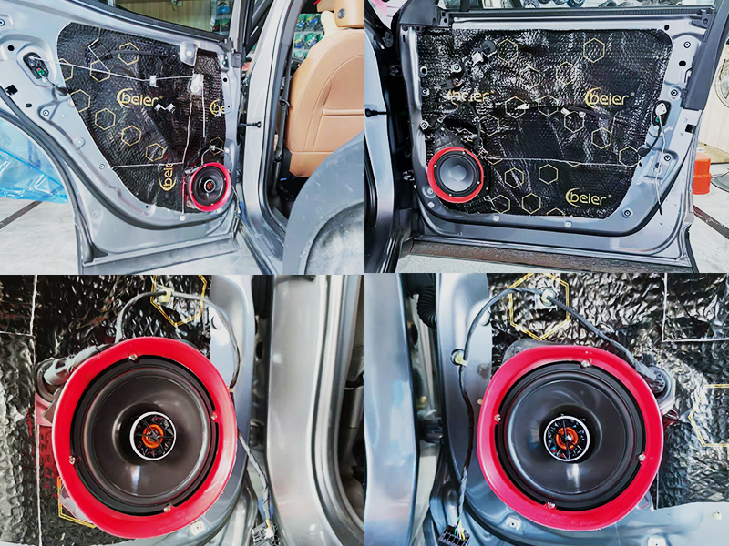 為了提高音質(zhì),我們在原車加了隔音棉。一是增加車門的厚度來減少共振。增加回響