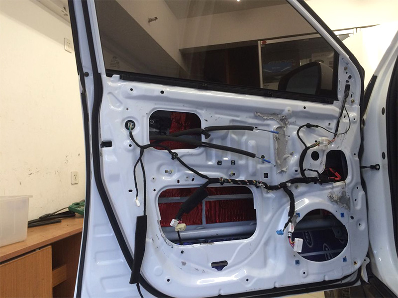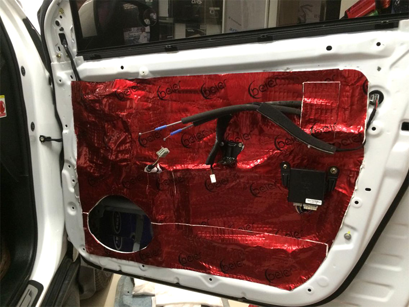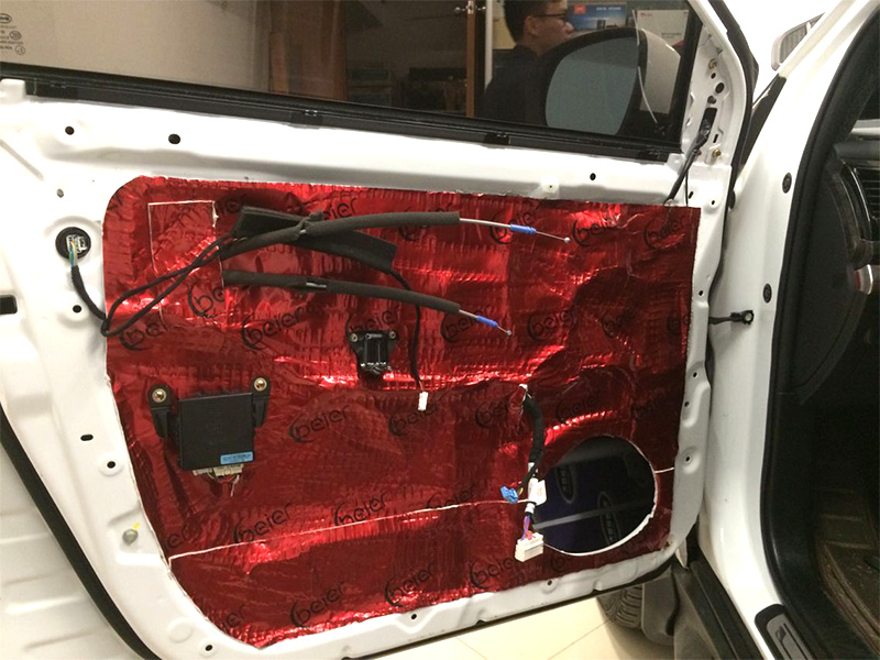 根據(jù)車門內(nèi)隔音面積結(jié)構(gòu)進行安裝隔音材料
