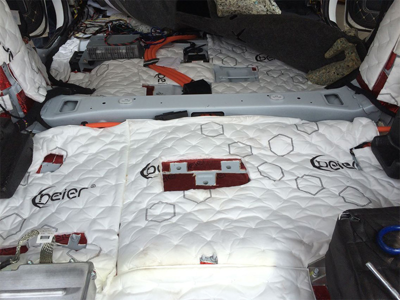 底盤和尾箱是低頻共振的重災(zāi)區(qū),但比亞迪唐的原車底盤和尾箱隔音措施非常欠缺,因此比亞迪唐的改裝技師,先使用貝爾紅魔止震板對汽車的底盤和尾箱做了第一層的止振處理,然后又使用貝爾吸音棉隔音材料,對汽車的底盤和尾箱做了第二層的密封處理,從而降低了底盤和尾箱產(chǎn)生的大部分噪聲。