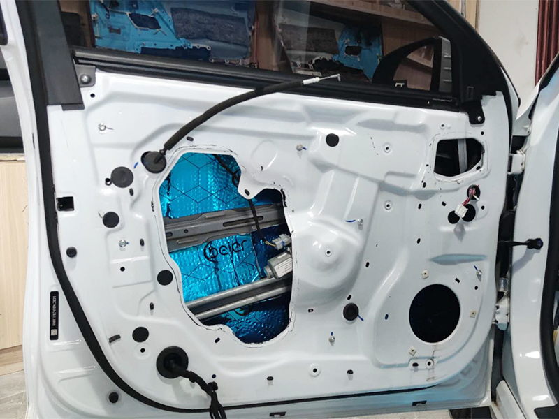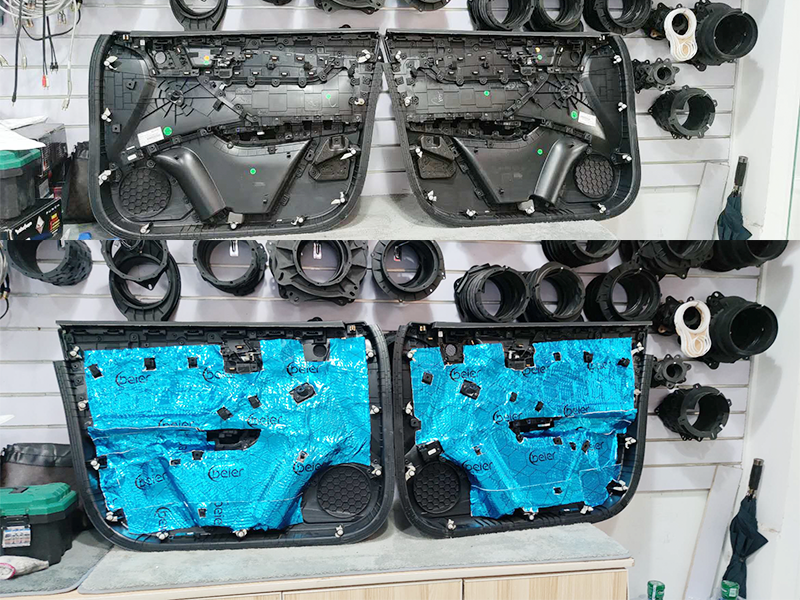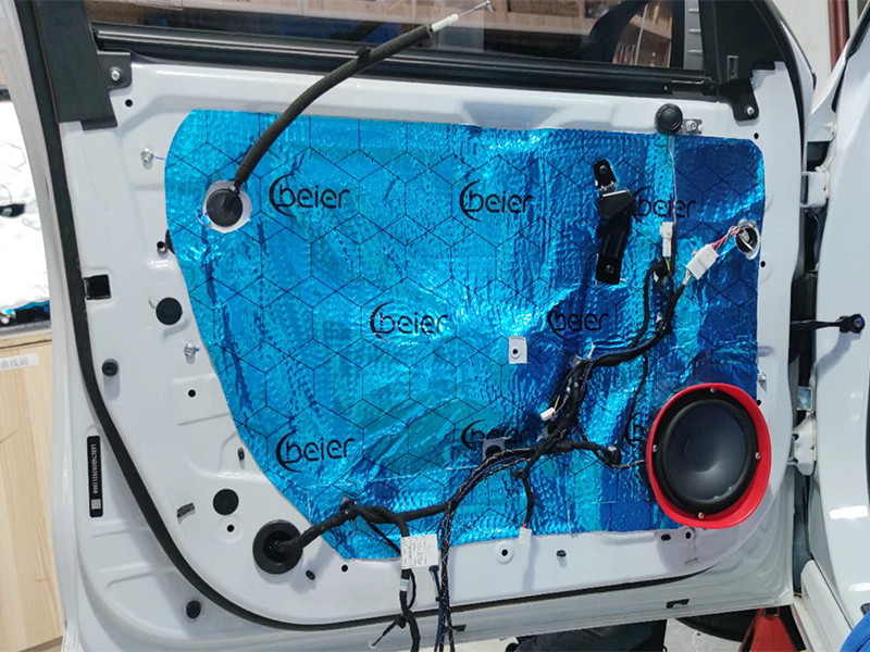 四門單薄原車鐵皮需要升級專業(yè)的貝爾四層隔音,降低風(fēng)噪的傳播點(diǎn)同時(shí)提升喇叭音響的音質(zhì)效果