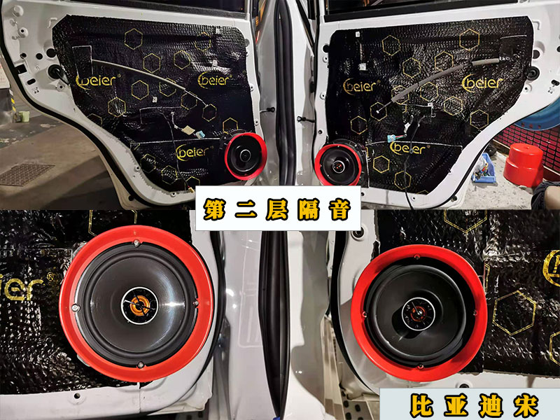 第二層隔音和第一層還是有的一定差異的,第二層主要就是密封整個(gè)車門,升級(jí)音響的過程中,四門車門就相當(dāng)于四個(gè)音箱,想要音質(zhì)和回響都比較好的話,那么密封性就得做好,其次就是喇叭的安裝上,安裝喇叭前需要更換上專用的喇叭墊,喇叭套上喇叭防水罩,擰上螺絲連接輸出線就可以了,是不需要打孔之類的,另外車門還有第三層隔音,就是貼的吸音棉,比較厚實(shí)那種,吸音降噪用的。