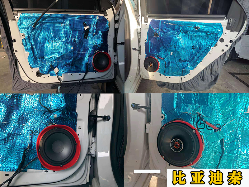 這邊也簡(jiǎn)單看一下配置,簡(jiǎn)單的四門(mén)喇叭,外加貝爾的三層隔音。其實(shí)如果您對(duì)音質(zhì)沒(méi)有過(guò)多的追求的話,那么更換四門(mén)喇叭再加個(gè)DSP就是最好的選擇。其次是找專業(yè)的升級(jí)門(mén)店也很重要!