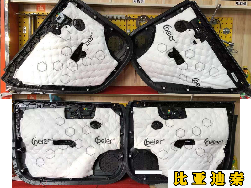 你知道門(mén)板噪音大的罪魁禍?zhǔn)资钦l(shuí)嗎?就是鋁板太薄了,容易產(chǎn)生共振而且風(fēng)噪也特別大。喇叭的音質(zhì)也會(huì)不好,所以升級(jí)音響先升級(jí)門(mén)板隔音。門(mén)板隔音是三層的,這是第一層,增加門(mén)板厚度減少共震。也能提升一定的音質(zhì)效果