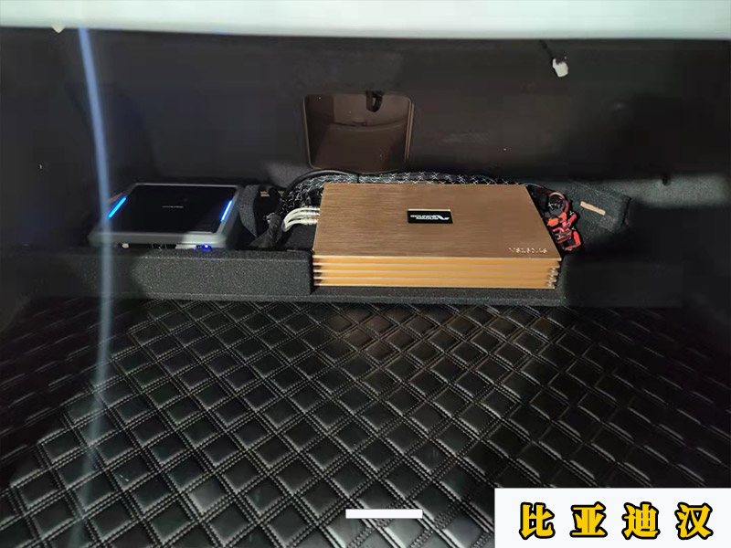 圣美歌的功放和阿爾派的處理器是安裝在后尾箱的,做了一個(gè)簡(jiǎn)易的放置箱體。這樣既不影響美觀也不占用地方。這臺(tái)比亞迪漢的主要工序就是這么多了,不知道你覺(jué)得怎么樣呢?