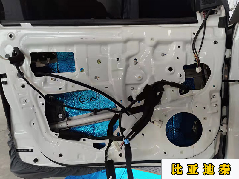 對了,還有四門的隔音,材料用的是貝爾的止震版,一共是做三層,兩層止震板,一層降噪棉,這里的是貼在內壁第一層。可以增加門板的厚度。減少高速行駛中產(chǎn)生的共振