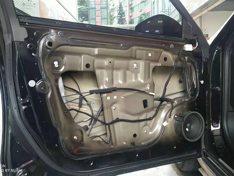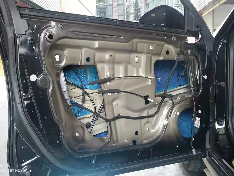 拆卸門板之后發(fā)現(xiàn)原車單薄的鐵皮是引起風(fēng)噪和共振噪音的根源