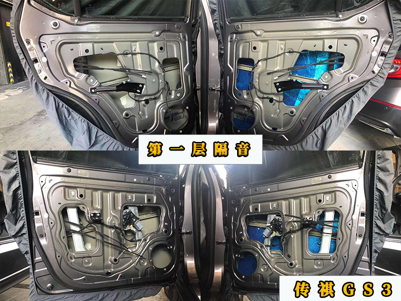 這是第一層隔音,左邊是原車的門板,右邊是門板的第一層隔音,主要就是增加 門板的厚度。減少異響和共振,門板厚了,對抗風噪也多了一層屏障。還能提升音質(zhì)效果