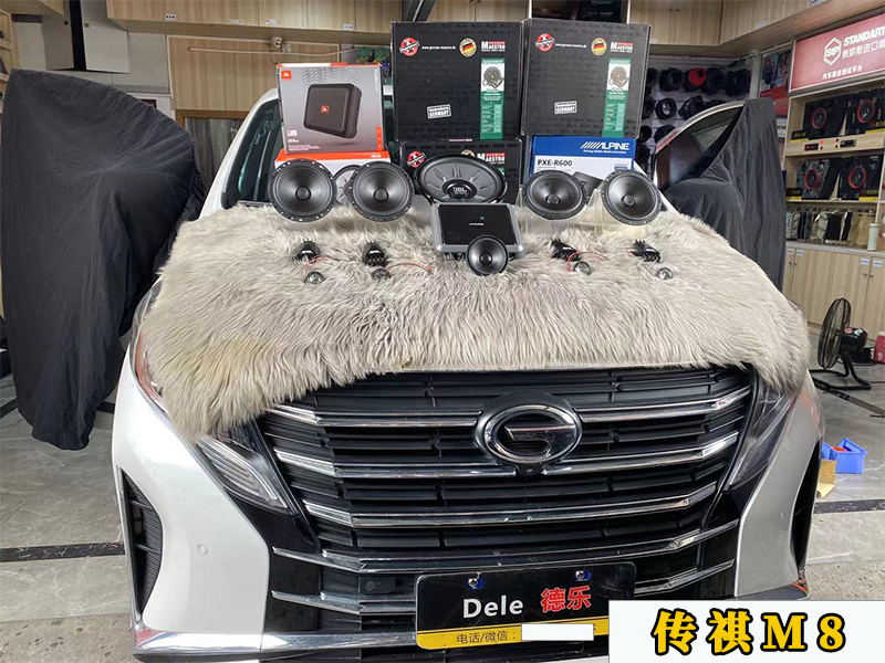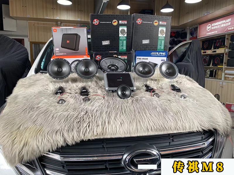 先簡(jiǎn)單看一下配置,這邊前門(mén)門(mén)升級(jí)的都是曼斯特的套裝喇叭。然后再用一臺(tái)阿爾派的R600處理器來(lái)調(diào)節(jié)全車的喇叭。傳祺M8加裝低音炮的話,在尾箱的右側(cè)有個(gè)低音炮擺放位置,用一個(gè)定制的箱體直接無(wú)損安裝上去,再用一臺(tái)低音功放來(lái)驅(qū)動(dòng)就可以了