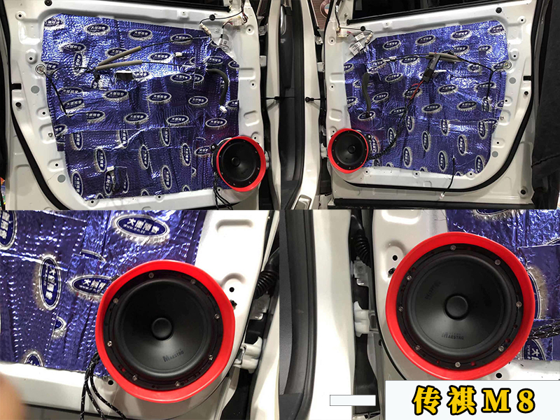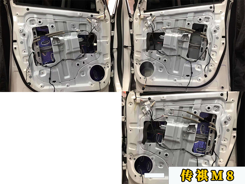 第二層隔音是做個(gè)整體的密封,做好之后就可以安裝喇叭了,需要更換傳祺的專用喇叭墊和防水罩。前后門(mén)的安裝其實(shí)都是一樣的,只不過(guò)后門(mén)的滑動(dòng)門(mén)操作空間小點(diǎn)而已。
