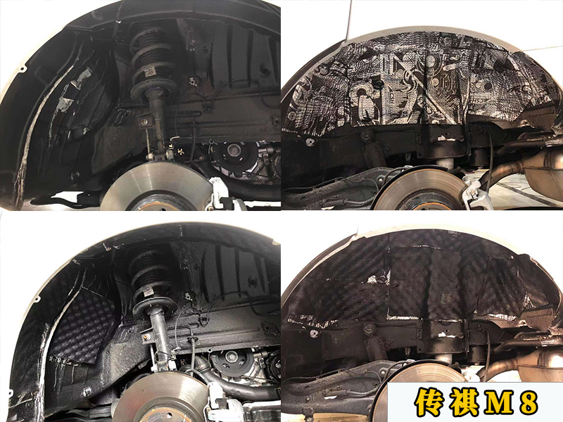 這邊車主是做了四輪的葉子板隔音的,用的是比較好的STP隔音材料。STP材料做的葉子板,由于材料的不同也會(huì)有不一樣的層數(shù),有的是貼三層,有的是貼四層。有些還得看車型。但總體來(lái)說(shuō)提升還是很大的,對(duì)胎噪路噪來(lái)說(shuō)的話