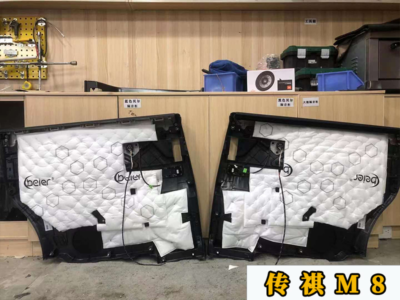 這邊是先給門板做了三兩層隔音,把車門密封好之后再安裝喇叭。這樣音質(zhì)效果也會比較好,還有車內(nèi)的隔音效果也會得到改善。然后就是安裝喇叭,更換傳祺的專用喇叭墊,在原車位直接安裝就可以了。