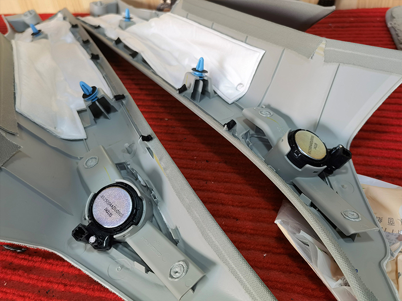 中門是測(cè)滑門,需要非常熟練的師傅拆裝,要不然容易損壞配件,當(dāng)然換喇叭之前還是要先做隔音,這是必不可少的,