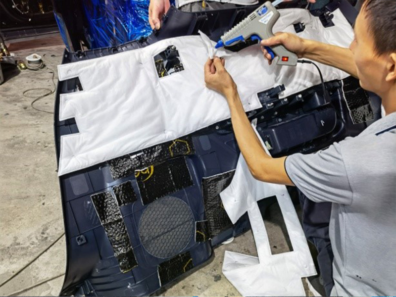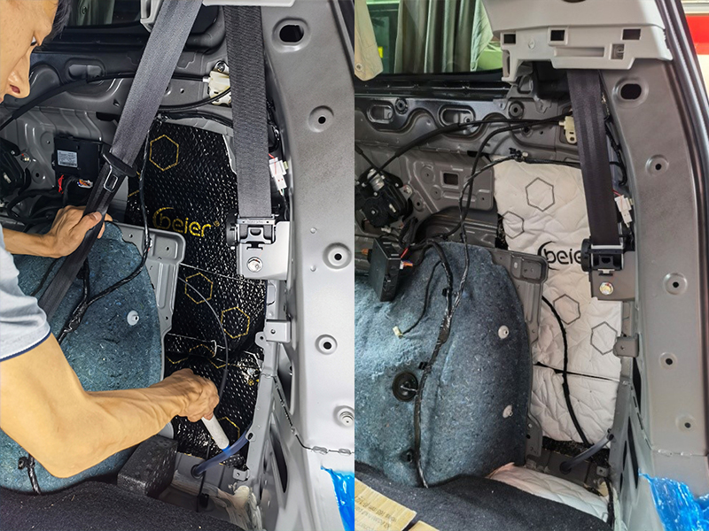 右側(cè)內(nèi)飾板止震和隔音棉施工