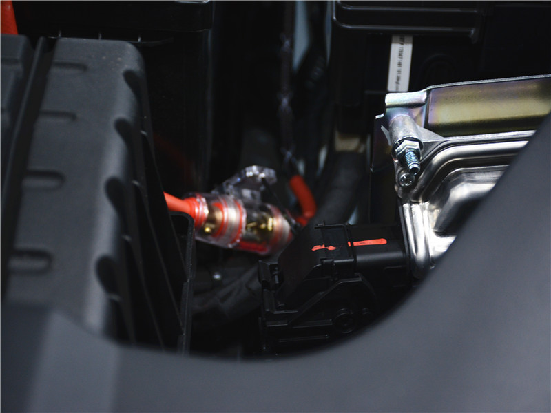 惠威X3 A/B類四路功放安裝在副駕座椅下,能有效機(jī)器的散熱和隱蔽