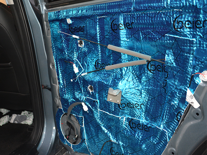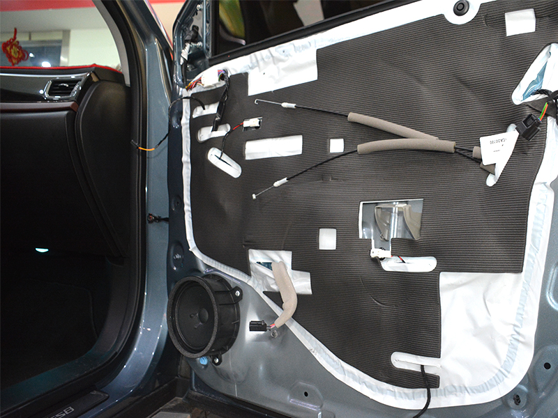 車(chē)門(mén)外層隔音施工,貼得整齊,壓得嚴(yán)實(shí),