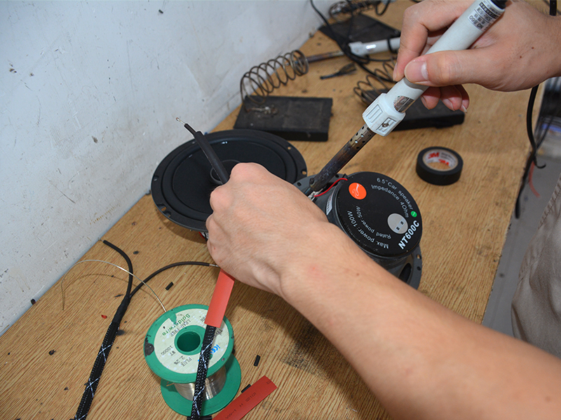 準(zhǔn)備安裝喇叭,先把喇叭線焊接上,并用套管加以保護(hù),