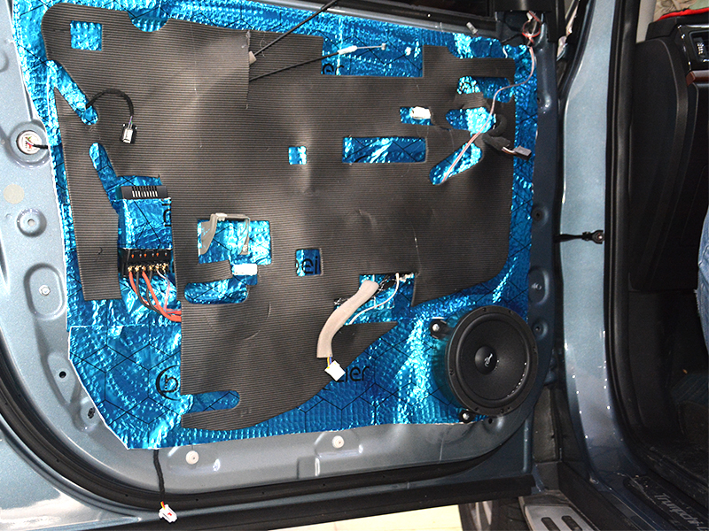先做車(chē)門(mén)內(nèi)層隔音,看看這個(gè)是按照德樂(lè)隔音施工標(biāo)準(zhǔn)做出來(lái)的效果,