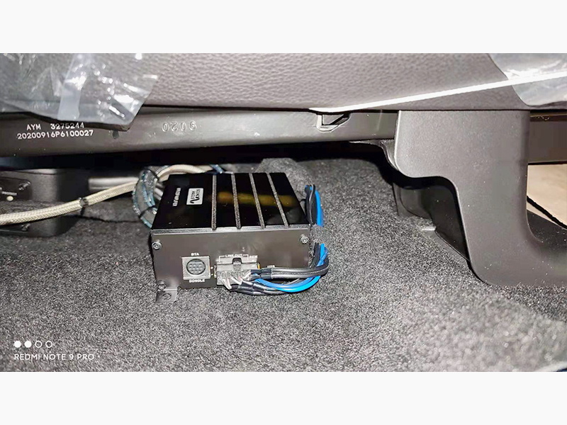 這邊我們看到的是DSP的安裝。圣美歌的這款處理器也是迷你款的,真的就是隨便找個地方都能扔的那種。這個安裝是直接使用專用線來對插中控臺的,直接對插就可以了,完全不用改線啥的。超級方便的那種