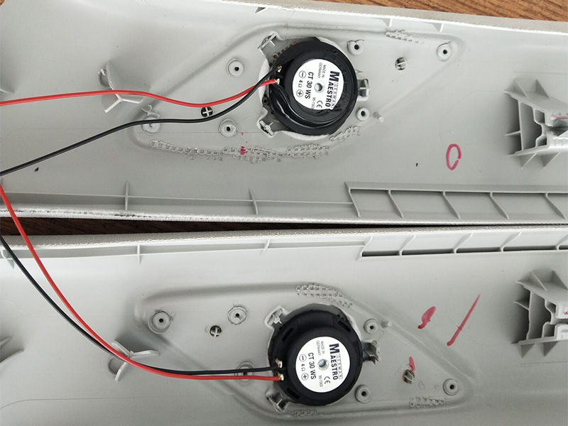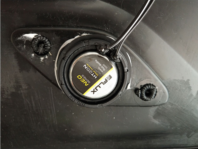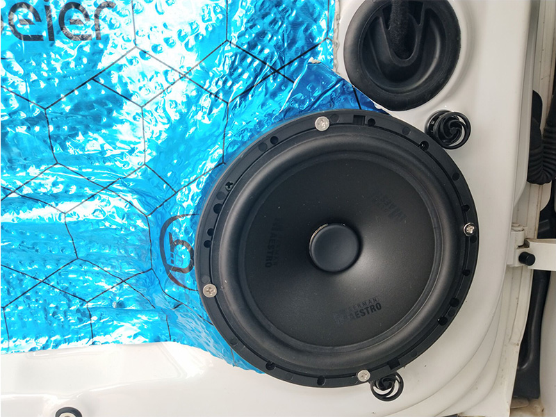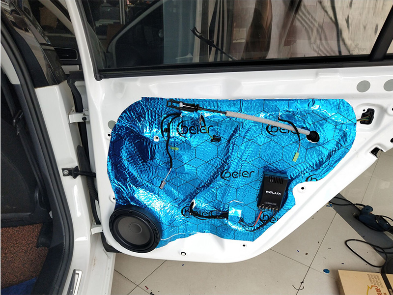 在對后門板做好雙層隔音處理后,技師將佛倫斯260安裝在后門板位置,喇叭的高音亮麗,中頻飽滿,低頻的表現(xiàn)結實有力,聲場的層次鮮明,細節(jié)豐富,聲音表現(xiàn)立體飽滿。