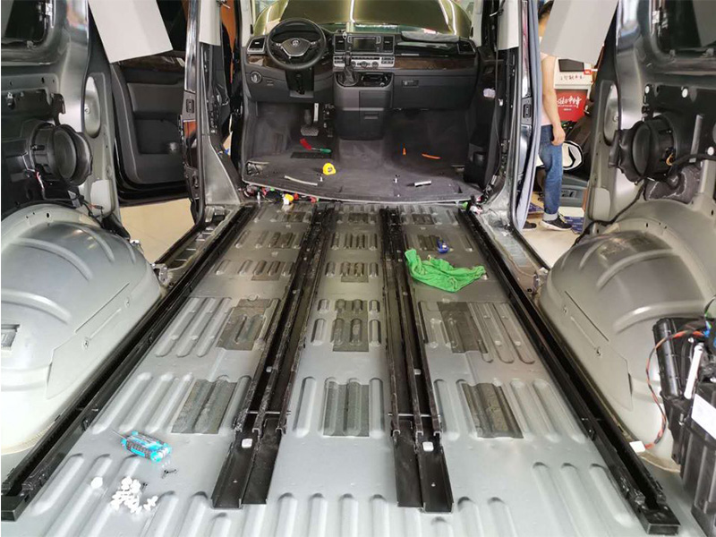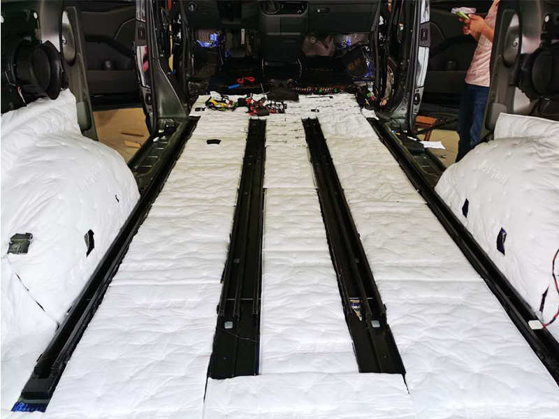 將邁特威(參數(shù)|圖片)室內(nèi)的座椅和內(nèi)飾都拆卸下來,原車在底板的木紋飾板和底板的鈑金板之間,沒有什么隔音處理,所以才會(huì)在駕駛過程有明顯的共振異響。