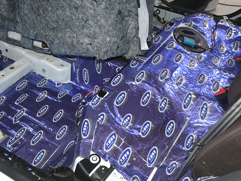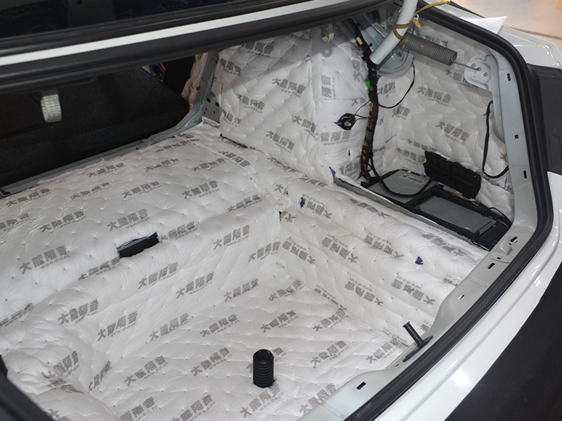 尾廂右側(cè)葉子板粘貼大能的溫莎吸音棉,有這層吸音材料,可以有效減少尾廂共震,共鳴,效果顯著