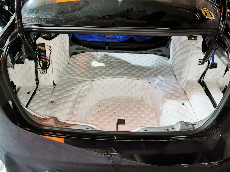 尾箱隔音是有效降低胎噪路噪異響的一個隔音版塊,必須箱體雙層隔音