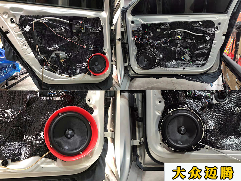 這是第二層隔音和喇叭的安裝,這里需要更換邁騰專用的喇叭墊,外面再加一層防水罩。全程無損的,補(bǔ)損壞原車的線材和門板