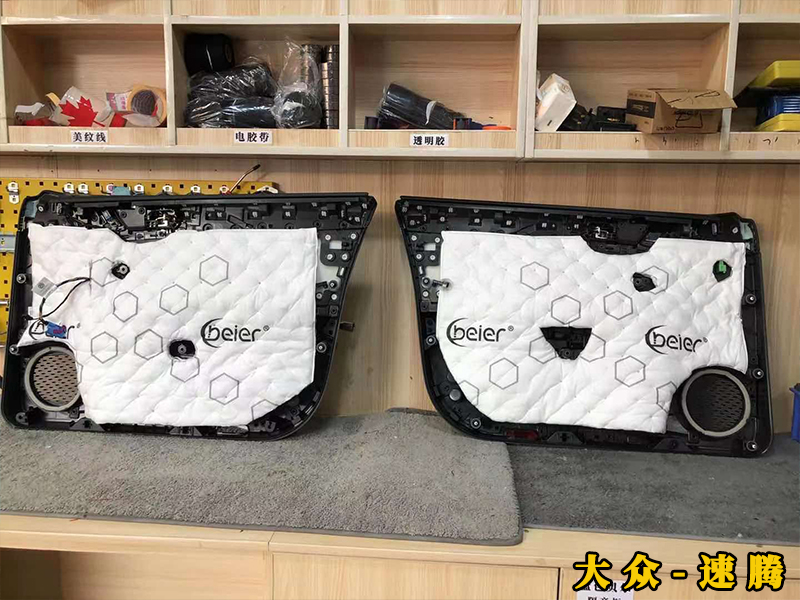 第二層隔音可以密封整個車門,讓聲音的損失降到最低。然后再更換一個速騰專用的喇叭墊,就可以直接把升級的喇叭裝上去了,全程無損,外面還加了一層防水罩。