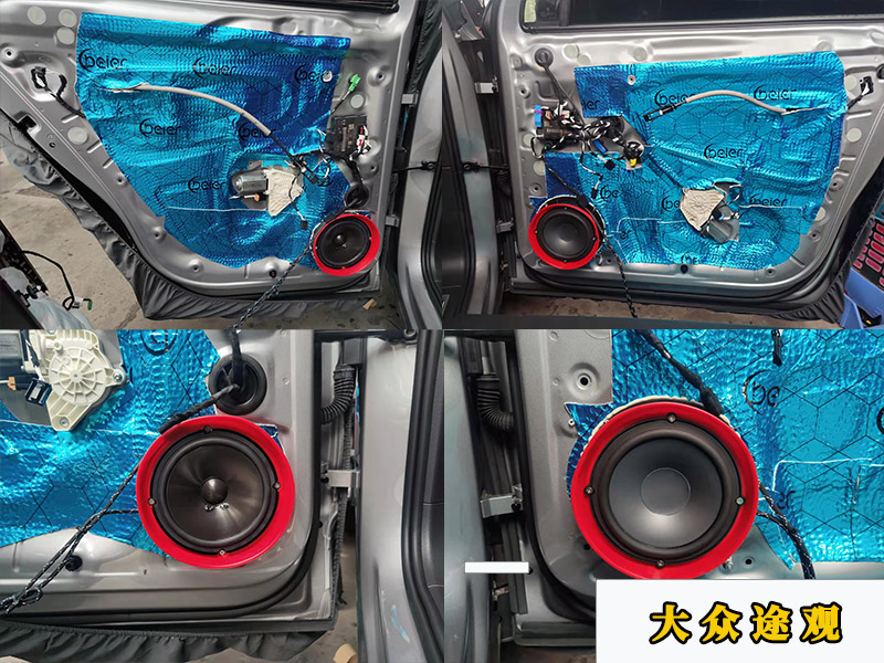 升級喇叭和升級隔音是一起的,門板隔音不做好的話,喇叭也發(fā)揮不出它真正的效果。一共是三層,門板最里面的內(nèi)壁貼了一層,外面再貼一層做密封。其次就是喇叭的安裝,更換途觀的專用喇叭墊,直接無損安裝上去就可以了。