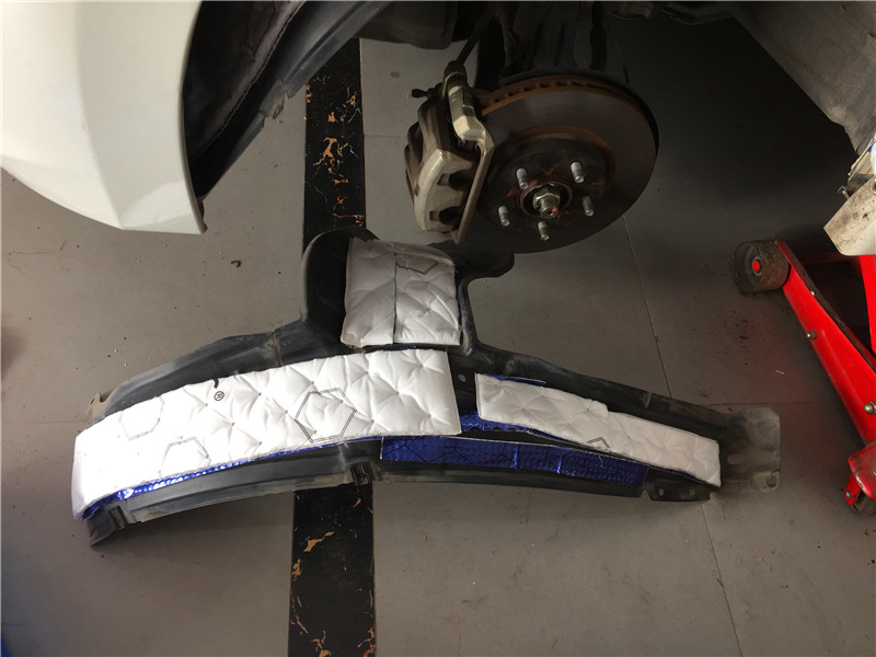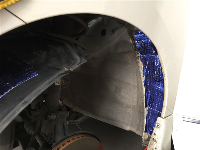葉子板隔音,第一層貼止震板把孔洞堵住,主要是為了隔絕路噪和風噪,特別是走高速的時候,這一塊的隔音就顯的非常重要了,做完隔音之后,能有效減低路噪和風噪,給您一個安靜、安全的乘車環(huán)境。