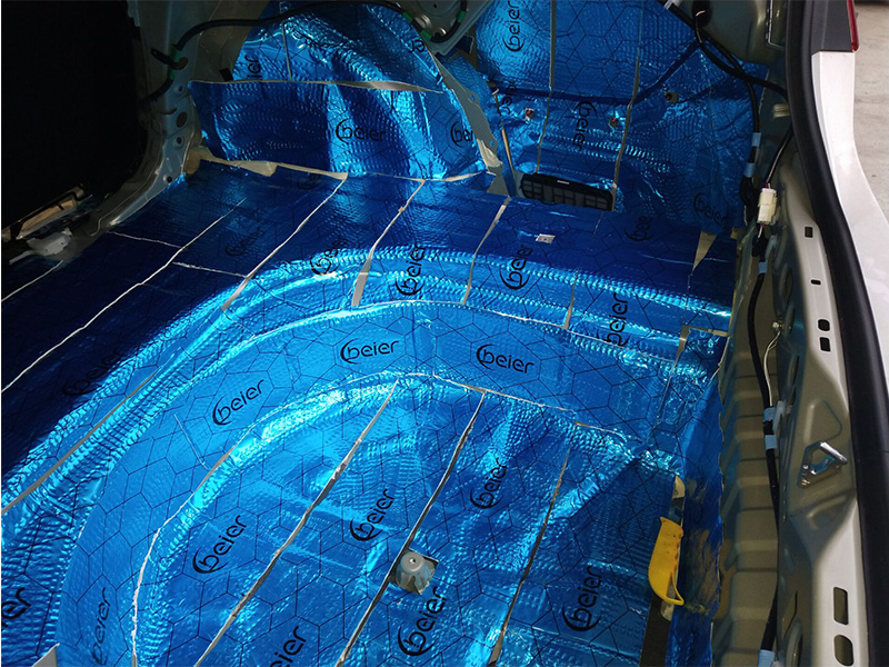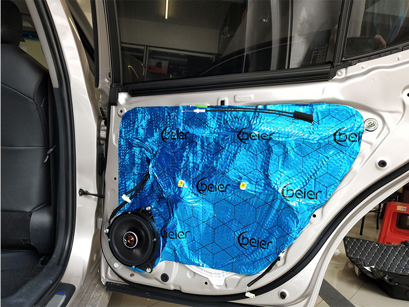 全車隔音不能缺失的就是引擎的隔音,他是離發(fā)動機(jī)最近的鈑金之一。必須使用專用隔熱膜進(jìn)行降噪
