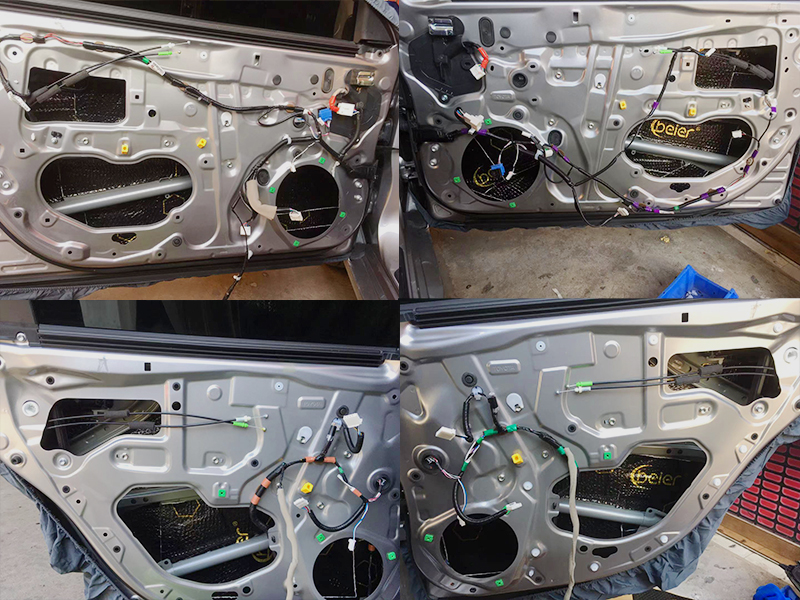 這里的JBL是兩套的609C.再加上一個(gè)超薄低音炮。整套配置下來就那種感覺,簡直就是一個(gè)移動的卡拉OK了嘛。這里我們還是按照管理先把四門隔音給做了先。用的是比藍(lán)膜還要厚的貝爾黑膜。隔音效果也就自然會更好。