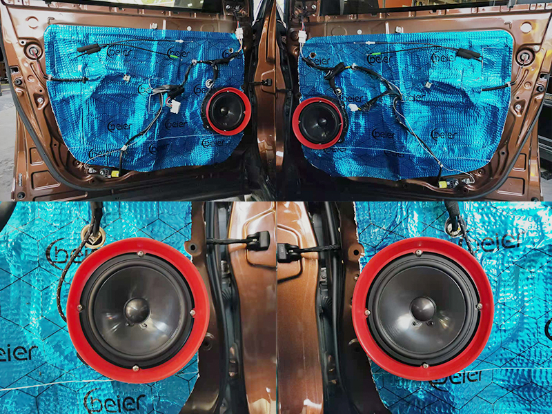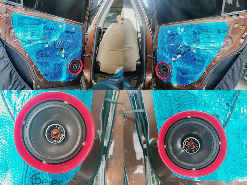我們一直堅持的都是無損升級。在原車喇叭位上進行更換即可!我們也提供專車專用的喇叭墊。第二層隔音我們使用的也是貝爾的隔音藍膜!這一層主要作用是密封性