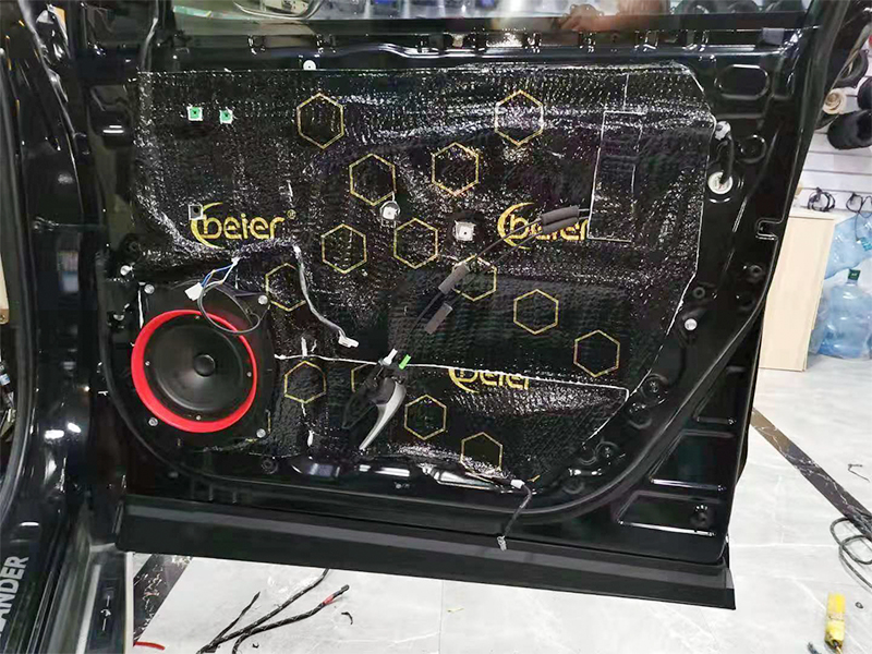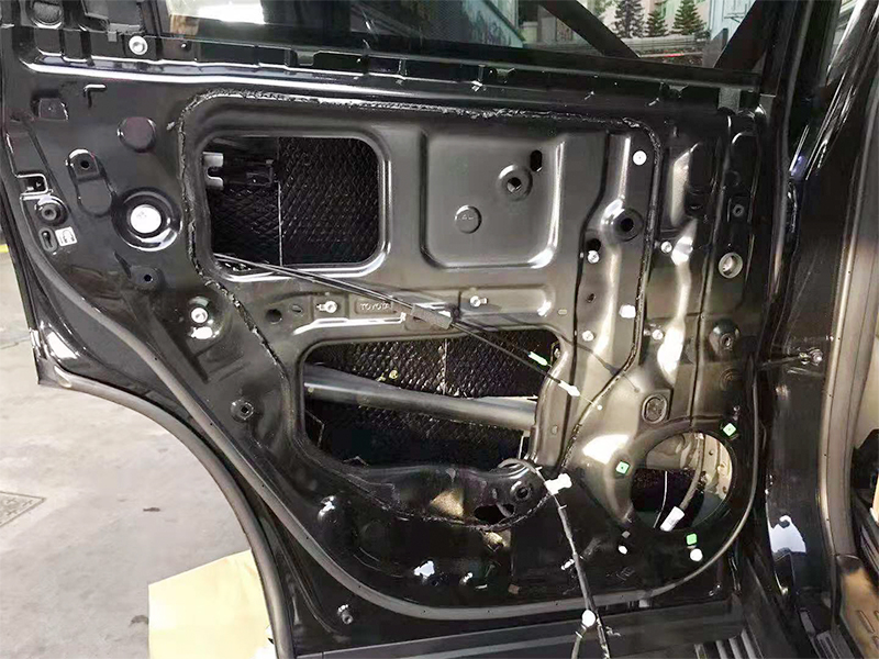 把四門的門板拆卸下來后您會發(fā)覺,原車只有一層薄薄的隔水膜,根本起不了隔音的效果。