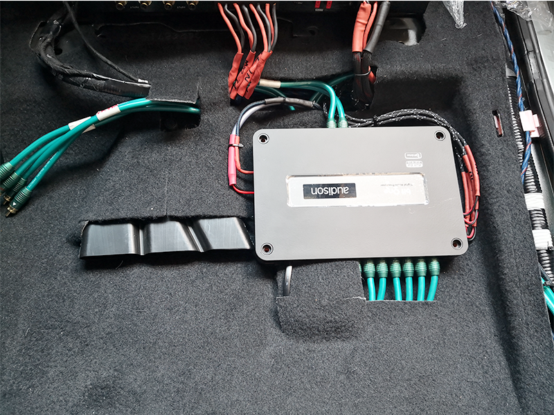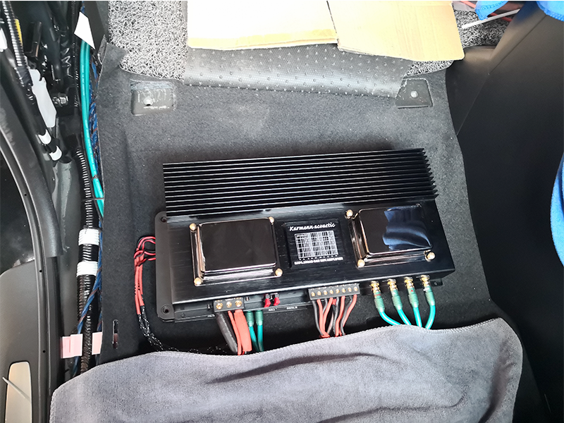 其中處理器和兩臺卡文功放安裝在座位底下,大功率進口功放,馬力功率非常的強勁,其中使用俄羅斯切爾諾夫線材充分發(fā)揮出最好的聲音效果