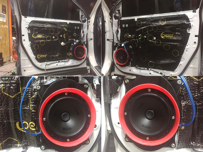 第二層隔音的貼法是和第一層是一樣的。如果第一層是減震,第二層就是形成箱體。讓聲音的環(huán)繞和傳播更通透。把所需要的線出國隔音,接好線之后,喇叭焊接連接線就可以直接安裝了。喇叭的外層我們還套上了專用的喇叭墊子。這個(gè)是防水的哦!
