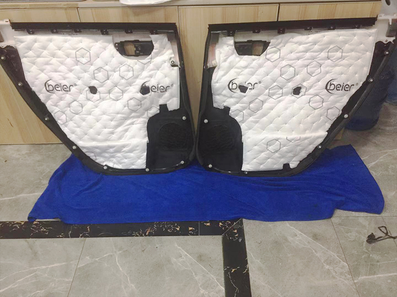 隔音膜又被稱之為減震板,我感覺到最明顯的就是,沒貼之前和貼了之后,您可以嘗試著敲擊門板,發(fā)出的聲音是有很大區(qū)別的,沒貼之前聲響是很大的,震動(dòng)很大,貼了之后,明顯能感受到的就是車門很厚實(shí),震動(dòng)明顯減少了很多。接下來我們看第二層隔音和喇叭的安裝。
