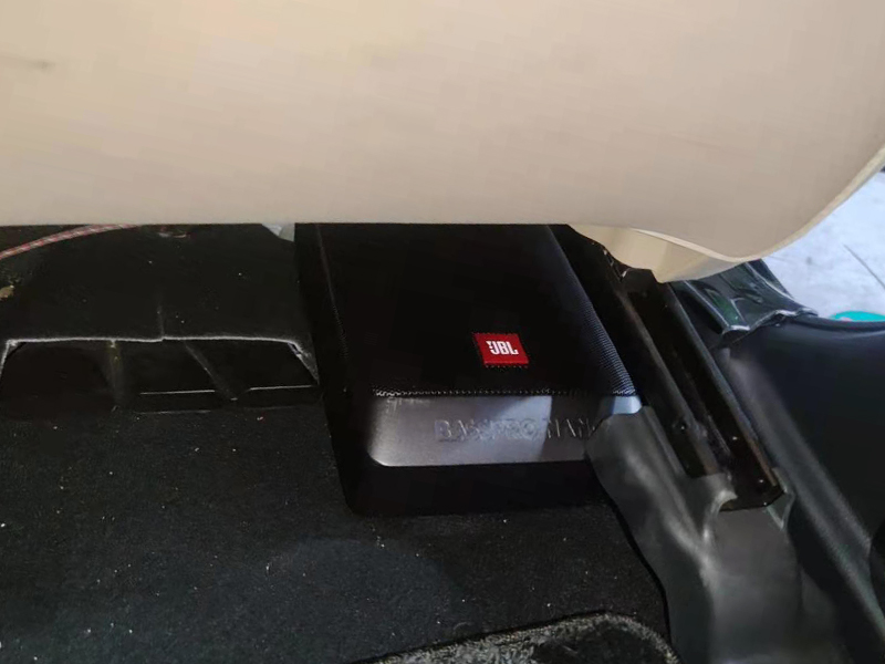低音炮和DSP都是安裝在座位底下的,連接線是使用專用對(duì)插線直接對(duì)插儀表臺(tái)。隱藏在腳墊下面,低音炮屬于大功率的產(chǎn)品,為此還需要做一個(gè)電流保護(hù)器。