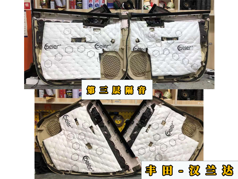 第二層隔音的話是貼在外面的,主要是封閉整個(gè)車門。減少失真!其次就是喇叭的安裝!這里需要更換專車專用的喇叭墊和防水罩,其他的就是焊線和連接輸入。全程基本無損