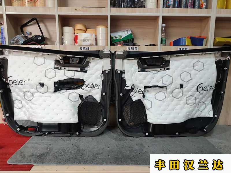 第二層隔音可以和第一層形成箱體,好的喇叭需要好的箱體就是這個道理。做好隔音之后就是安裝喇叭,這里需要更換上漢蘭達的專用喇叭墊。這樣才能直接把喇叭安裝上去。而不是大改開洞鉆孔。門板還需要貼上第三層隔音降噪棉