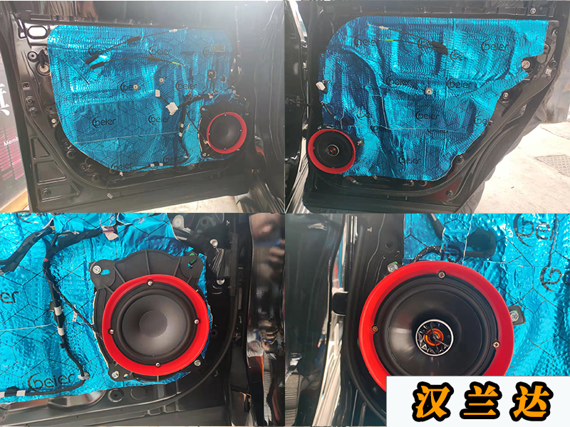 老樣子先看一下配置,漢蘭達原車是6個喇叭的,當(dāng)然如果你更換了一對帶了高音位置的A柱,那就可以在原來的高音位上加多兩個高音,那就是8個喇叭。這邊升級的是6個JBL喇叭,加裝的東西有一個處理器,一個超薄的低音炮。
