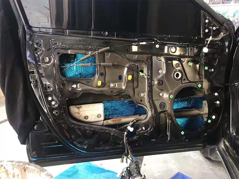 處理雜物后第一層開始貝爾藍膜隔音,加強鈑金都厚度,減少共振。