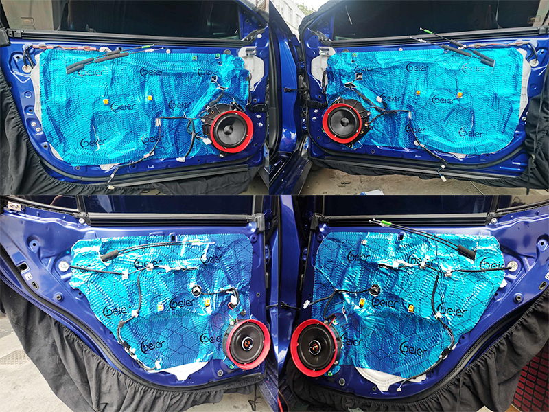 四門(mén) 第一層隔音,使用15年大品牌貝爾隔音對(duì)單薄的鐵皮強(qiáng)化厚度,減少共振點(diǎn),這個(gè)對(duì)后期升級(jí)的音響發(fā)揮效果有直接的聯(lián)系