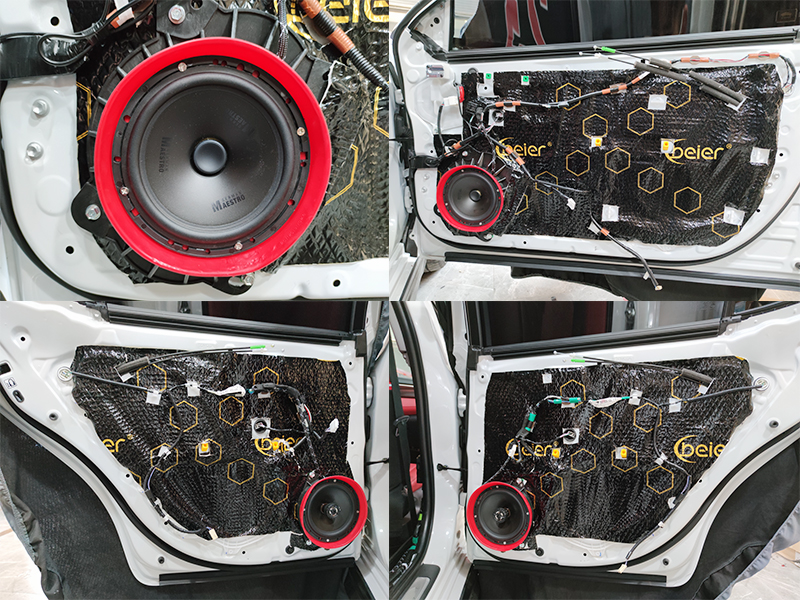 來個前門的隔音喇叭特寫,標(biāo)準(zhǔn)的施工,提升效果的良好播放環(huán)境