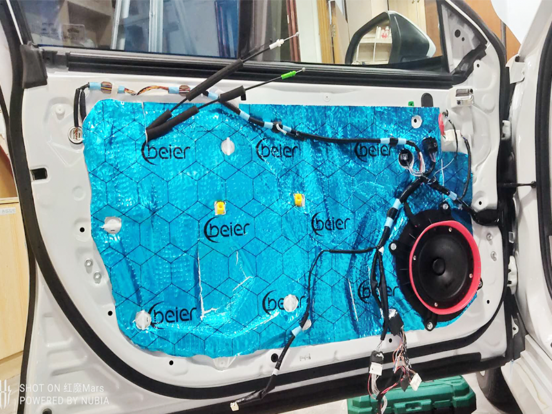 使用貝爾藍膜隔音板加強鈑金的厚度,減低共振的產(chǎn)生,這是第一步