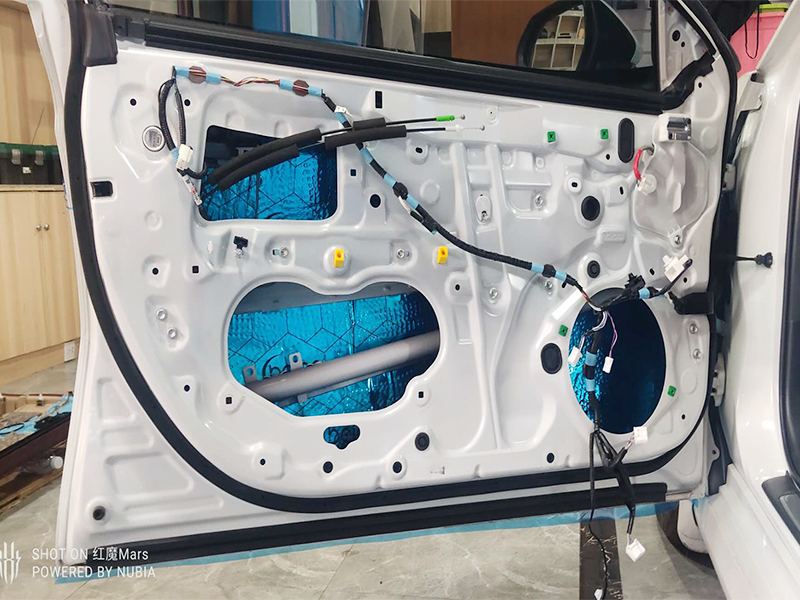 音響升級(jí)的第一步就是打造結(jié)實(shí)的音箱箱體,其就是對(duì)原車門板進(jìn)行隔音處理,加強(qiáng)鈑金的厚度和結(jié)實(shí)感